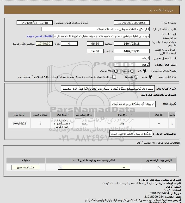 نام دستگاه خریدار:اداره کل حفاظت محیط زیست استان کرمان