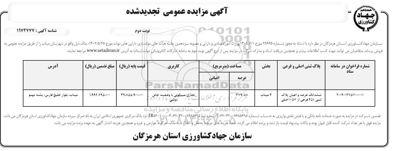 مزایده فروش ملک مساحت 379.58 مترمربع