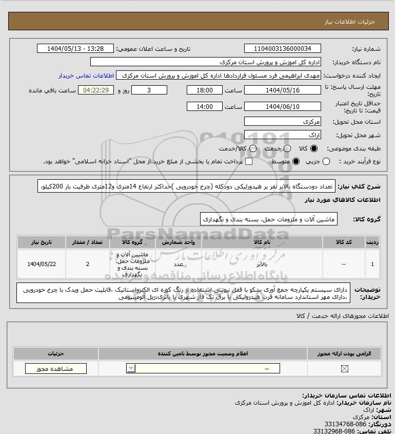 نام دستگاه خریدار:اداره کل اموزش و پرورش استان مرکزی