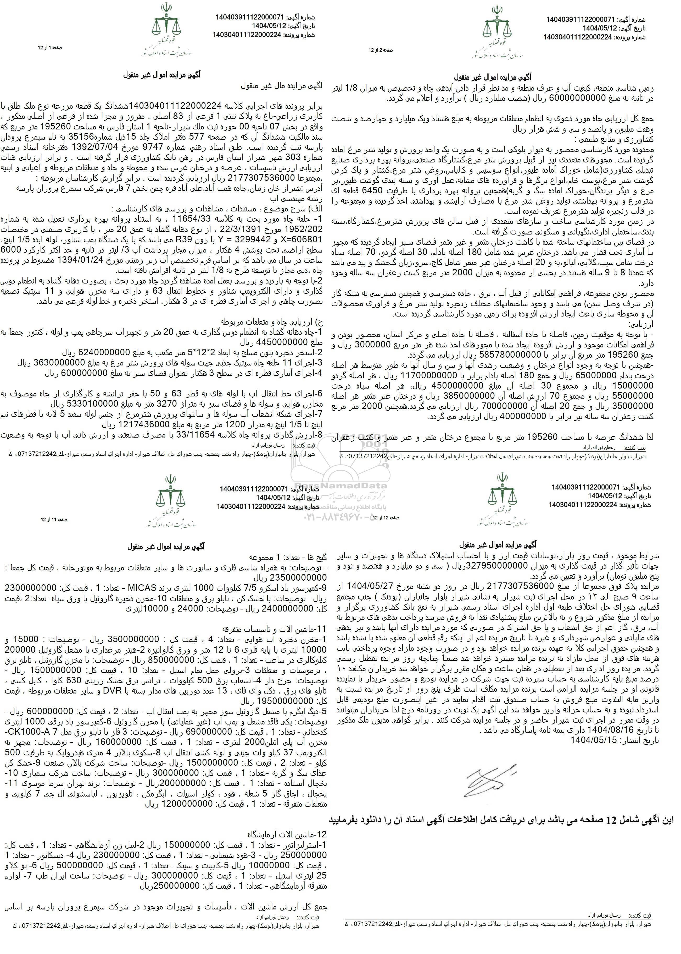تاریخ مزایده 1404.05.27 ساعت 9 الی 12