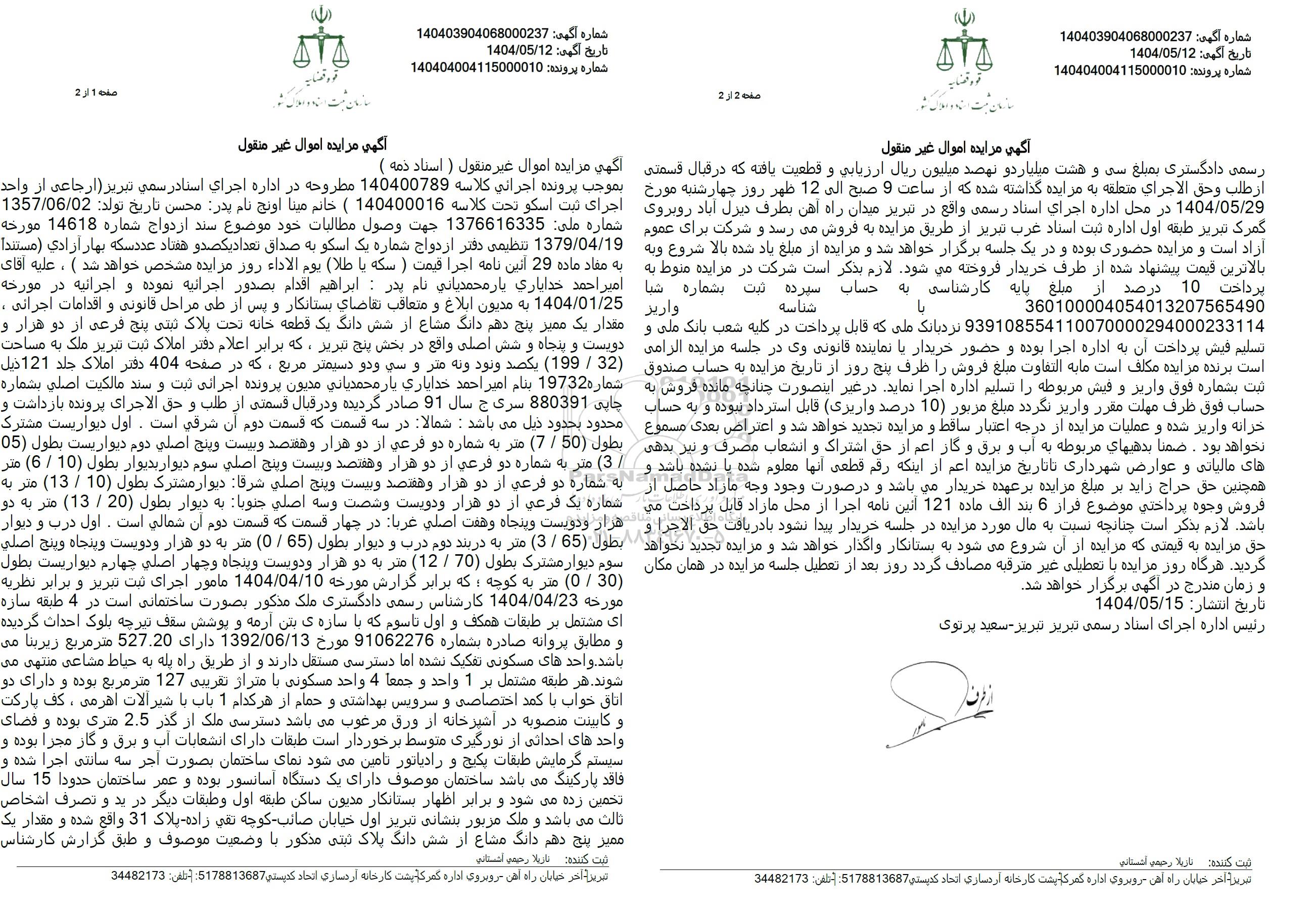 تاریخ مزایده 1404.05.29 ساعت 9 الی 12
