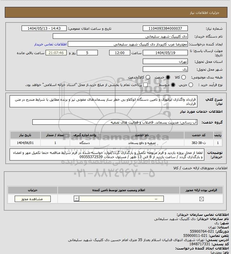 نام دستگاه خریدار:دی کلینیک شهید سلیمانی