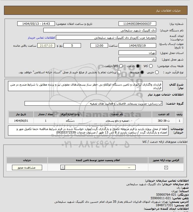نام دستگاه خریدار:دی کلینیک شهید سلیمانی