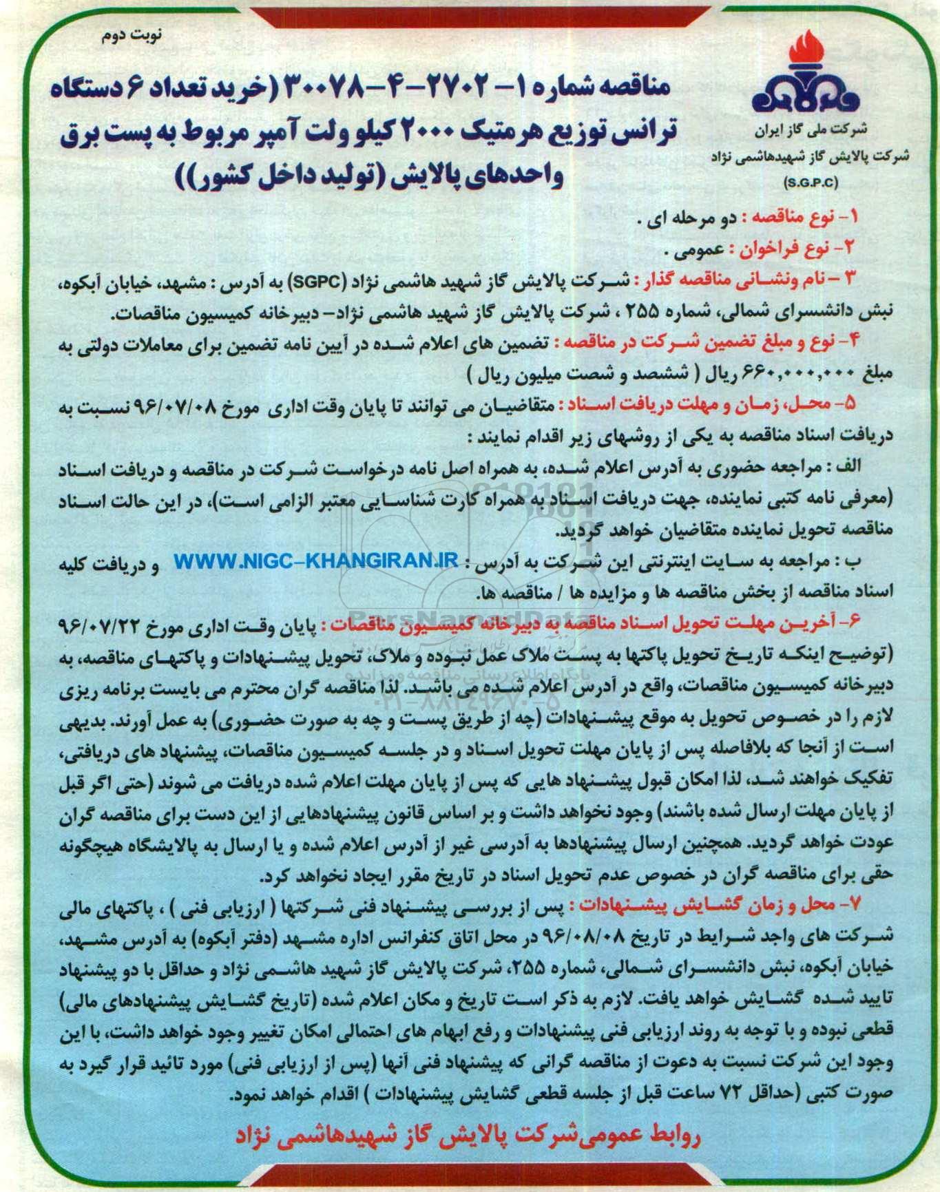 نام و نشانی مناقصه گزار شرکت پالایش گاز شهید هاشمی نژاد sgpc به ادرس مشهد خیابان آبکوه نبش دانشسرای شمالی شماره 255 شرکت پالایش گاز شهید هاشمی نژاد دبیرخانه کمیسیون مناقصات