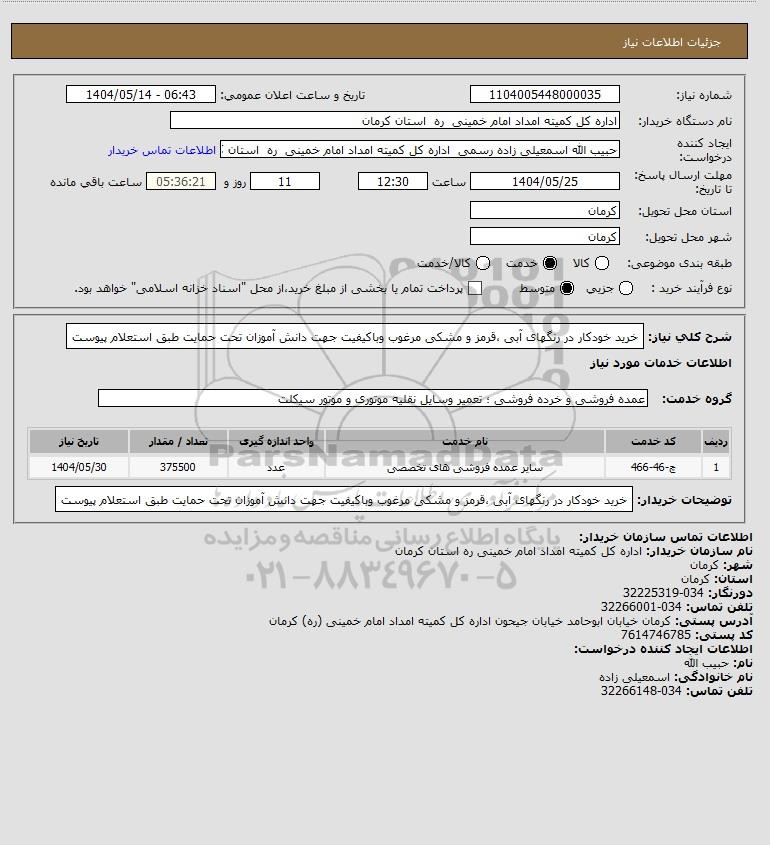 نام دستگاه خریدار:اداره کل کمیته امداد امام خمینی ره استان کرمان