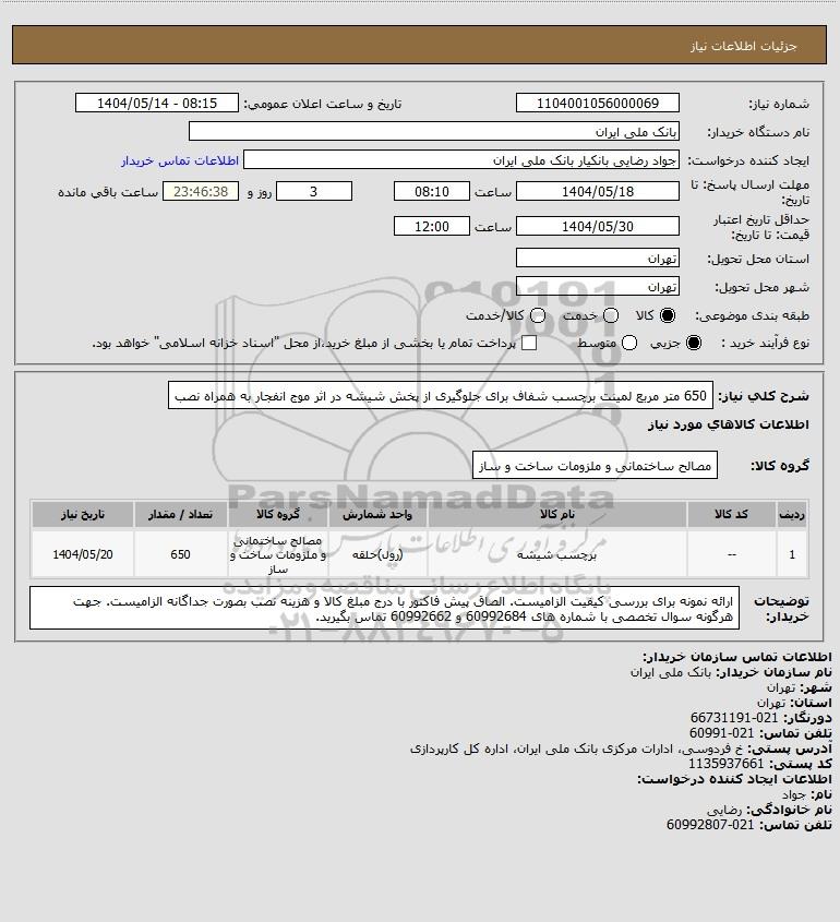 نام سازمان خریدار: بانک ملی ایران
