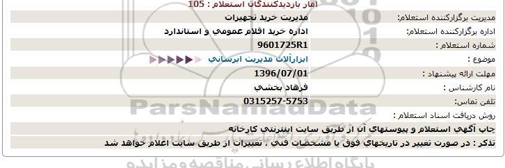 اداره برگزارکننده استعلام: اداره خرید اقلام عمومی و استاندارد