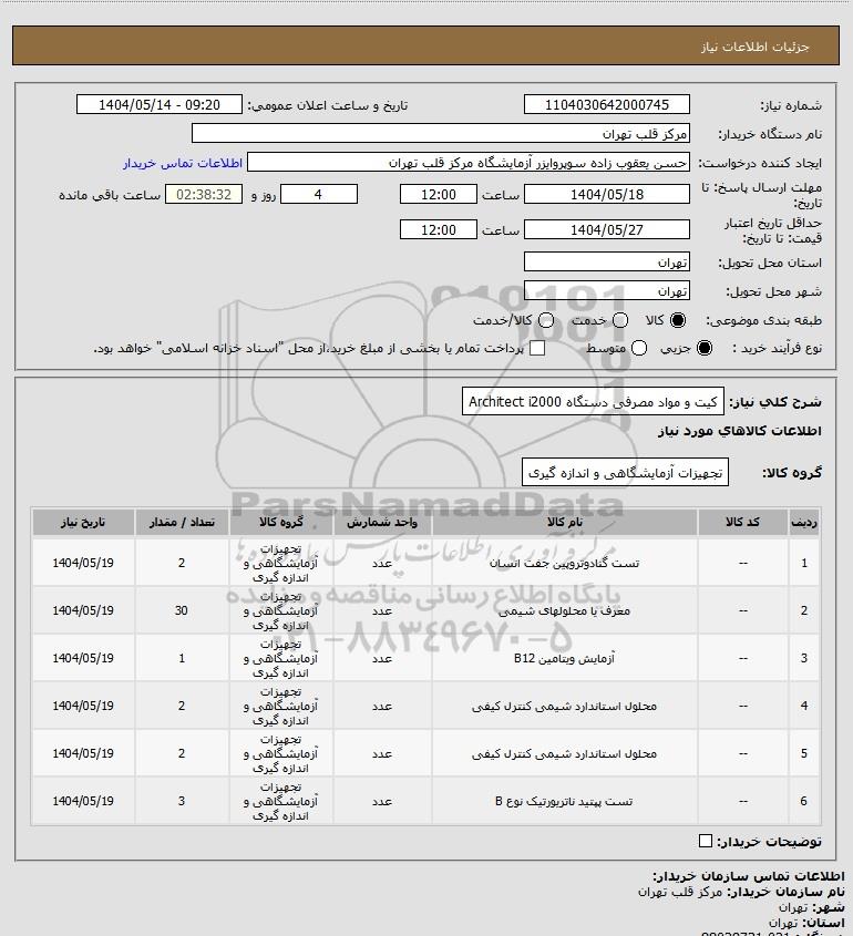 استعلام کیت و مواد مصرفی دستگاه Architect i2000, استعلام کیت و مواد مصرفی دستگاه Architect i2000