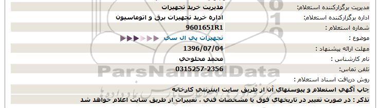 اداره برگزارکننده استعلام: اداره خرید تجهیزات برق و اتوماسیون