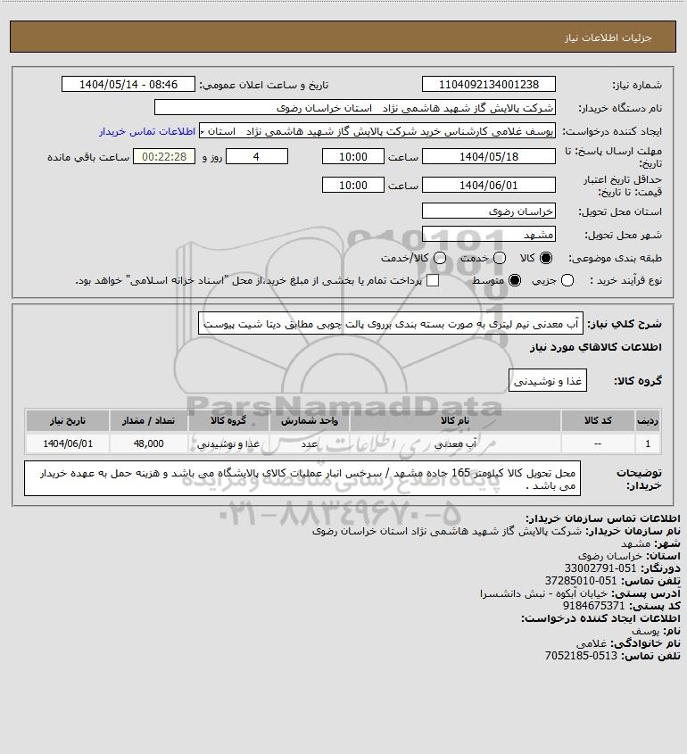 نام دستگاه خریدار:شرکت پالایش گاز شهید هاشمی نژاد استان خراسان رضوی