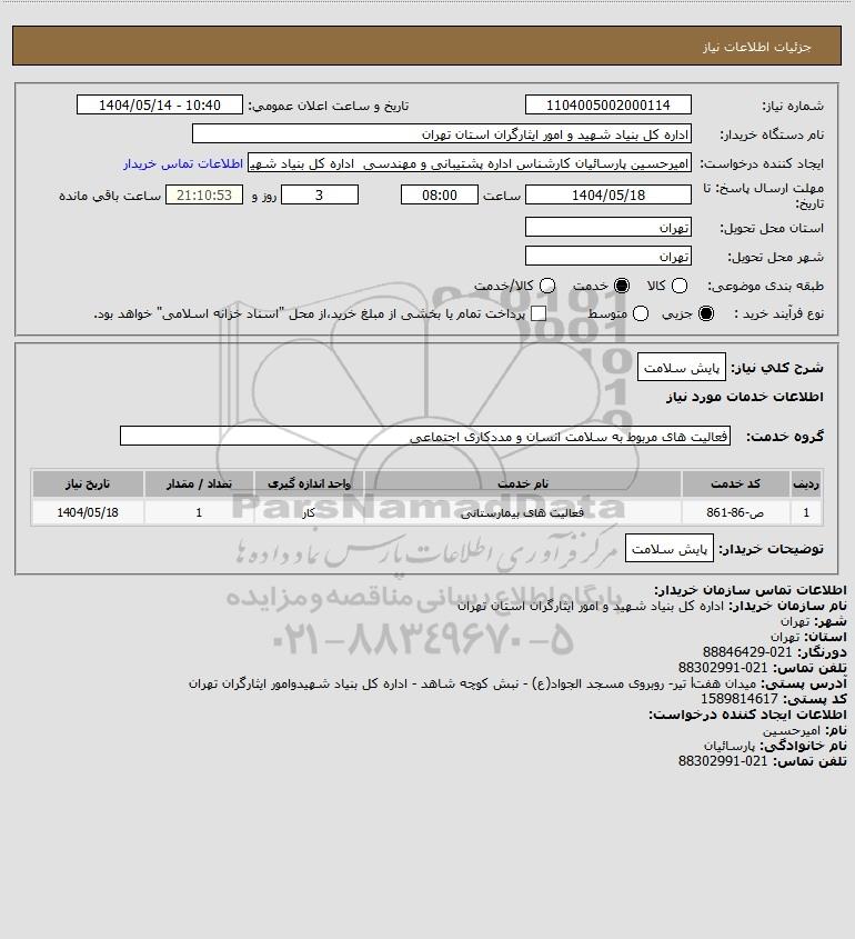 نام دستگاه خریدار:اداره کل بنیاد شهید و امور ایثارگران استان تهران