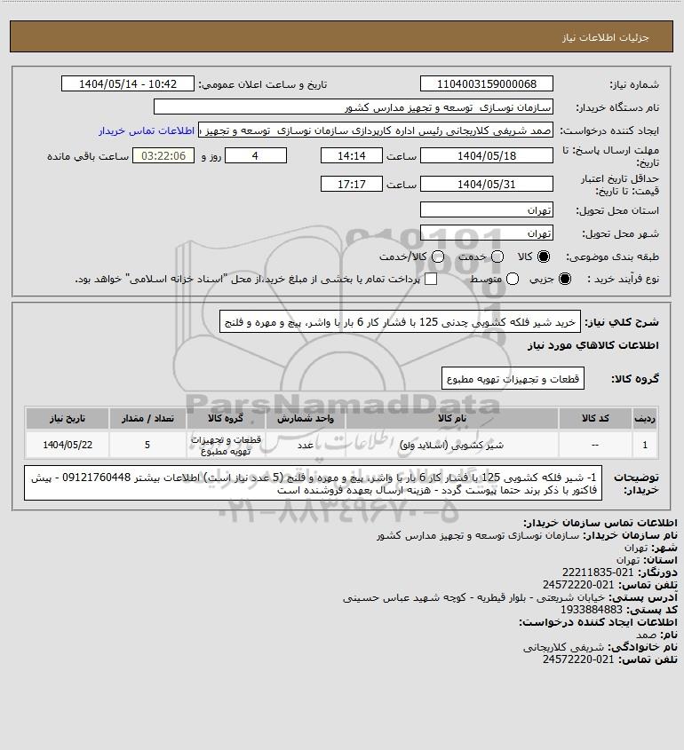 نام دستگاه خریدار:سازمان نوسازی توسعه و تجهیز مدارس کشور