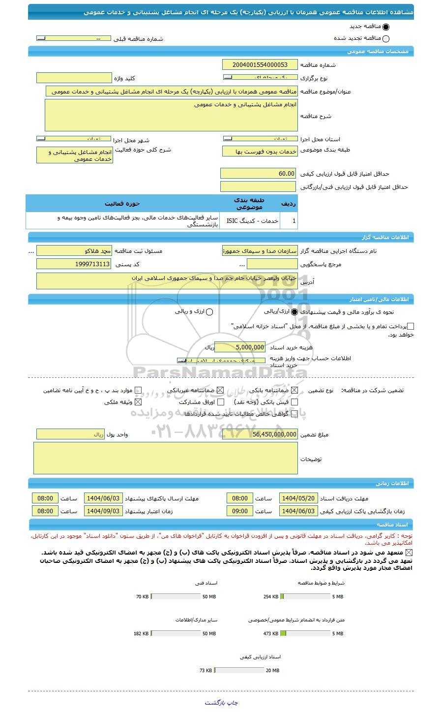 حداقل امتیاز قابل قبول ارزیابی کیفی60.00حداقل امتیاز قابل قبول ارزیابی فنی/بازرگانی