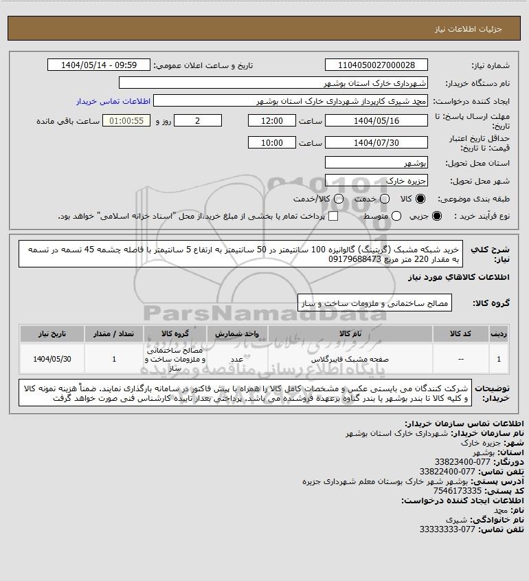 نام دستگاه خریدار:شهرداری خارک استان بوشهر