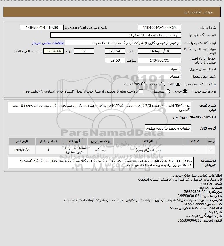 نام سازمان خریدار: شرکت آب و فاضلاب استان اصفهان