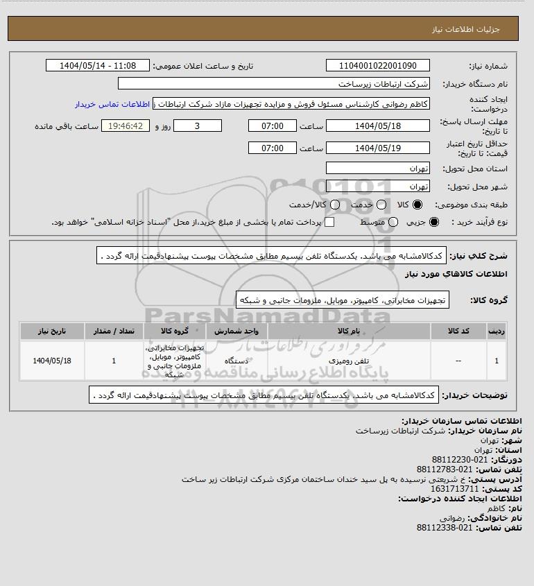 نام دستگاه خریدار:شرکت ارتباطات زیرساخت