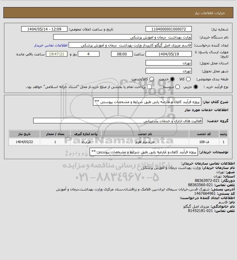 نام دستگاه خریدار:وزارت بهداشت درمان و اموزش پزشکی