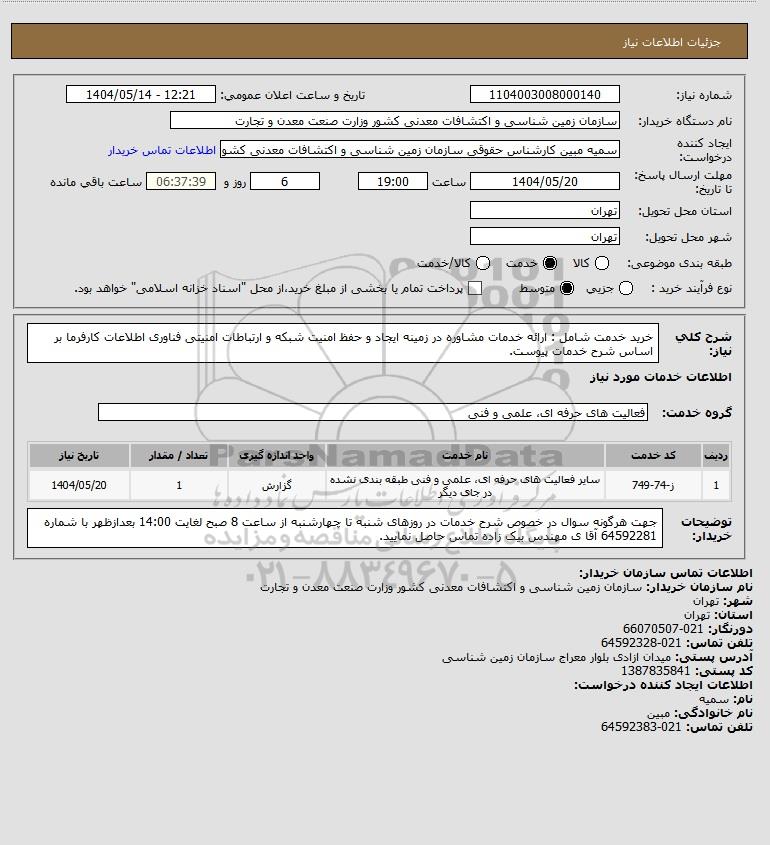 نام سازمان خریدار: سازمان زمین شناسی و اکتشافات معدنی کشور وزارت صنعت معدن و تجارت