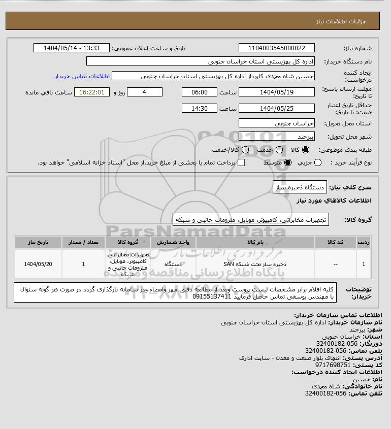نام دستگاه خریدار:اداره کل بهزیستی استان خراسان جنوبی