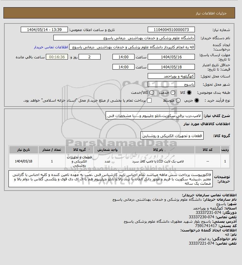 نام سازمان خریدار: دانشگاه علوم پزشکی و خدمات بهداشتی درمانی یاسوج