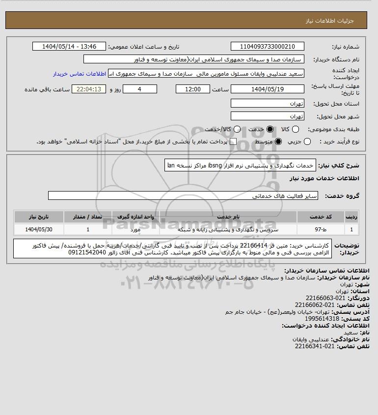 نام دستگاه خریدار: سازمان صدا و سیمای جمهوری اسلامی ایران(معاونت توسعه و فناور