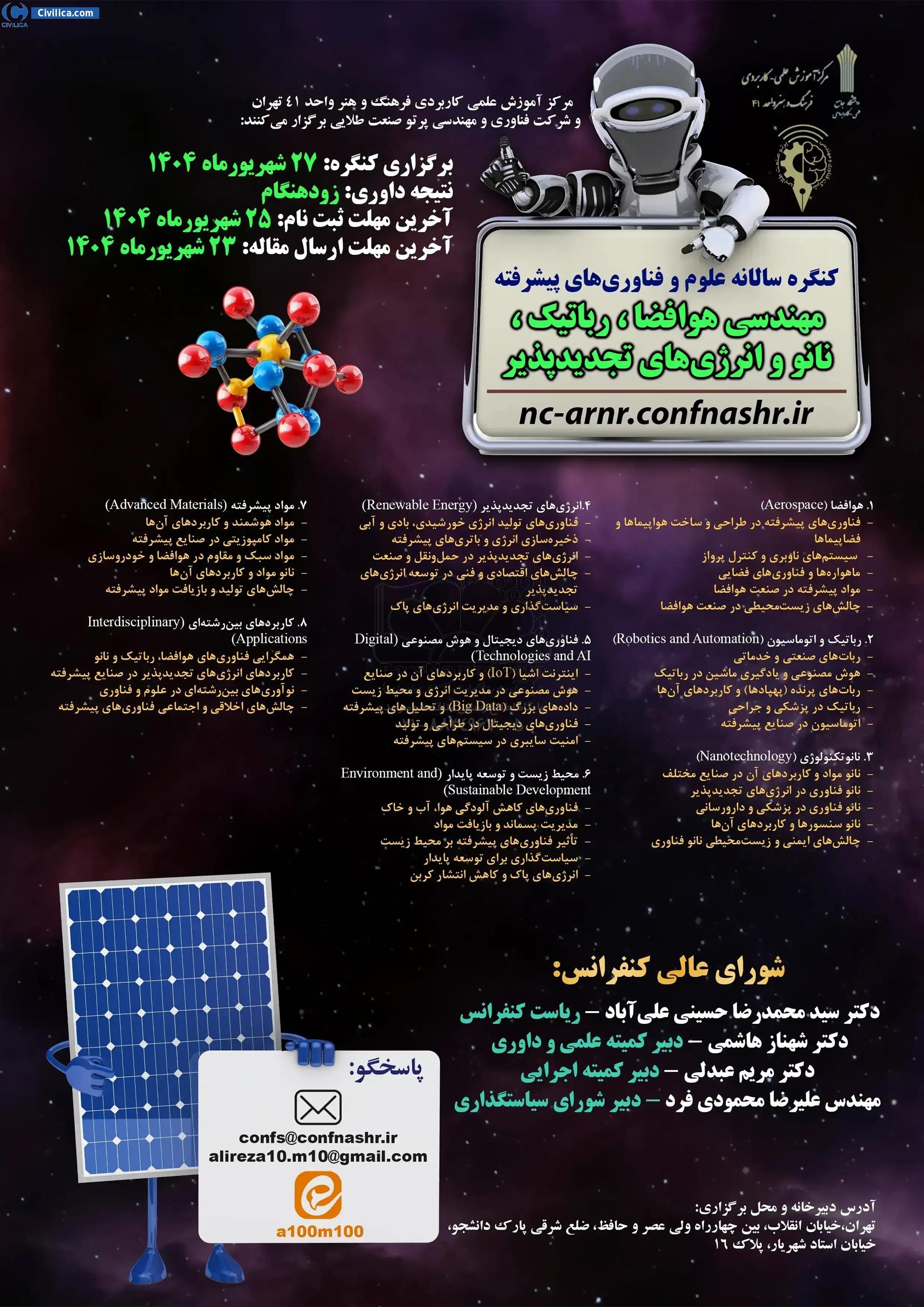 کنگره سالانه علوم و فناوری های پیشرفته مهنذسی هوافضا ؛ رباتیک ، نانو و انرژی های تجدیدپذیر