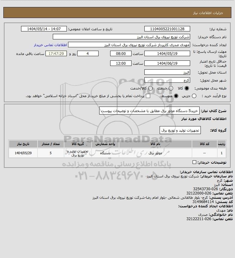 1 -- موتور برق دستگاه تجهیزات تولید و توزیع برق 5 1404/05/29