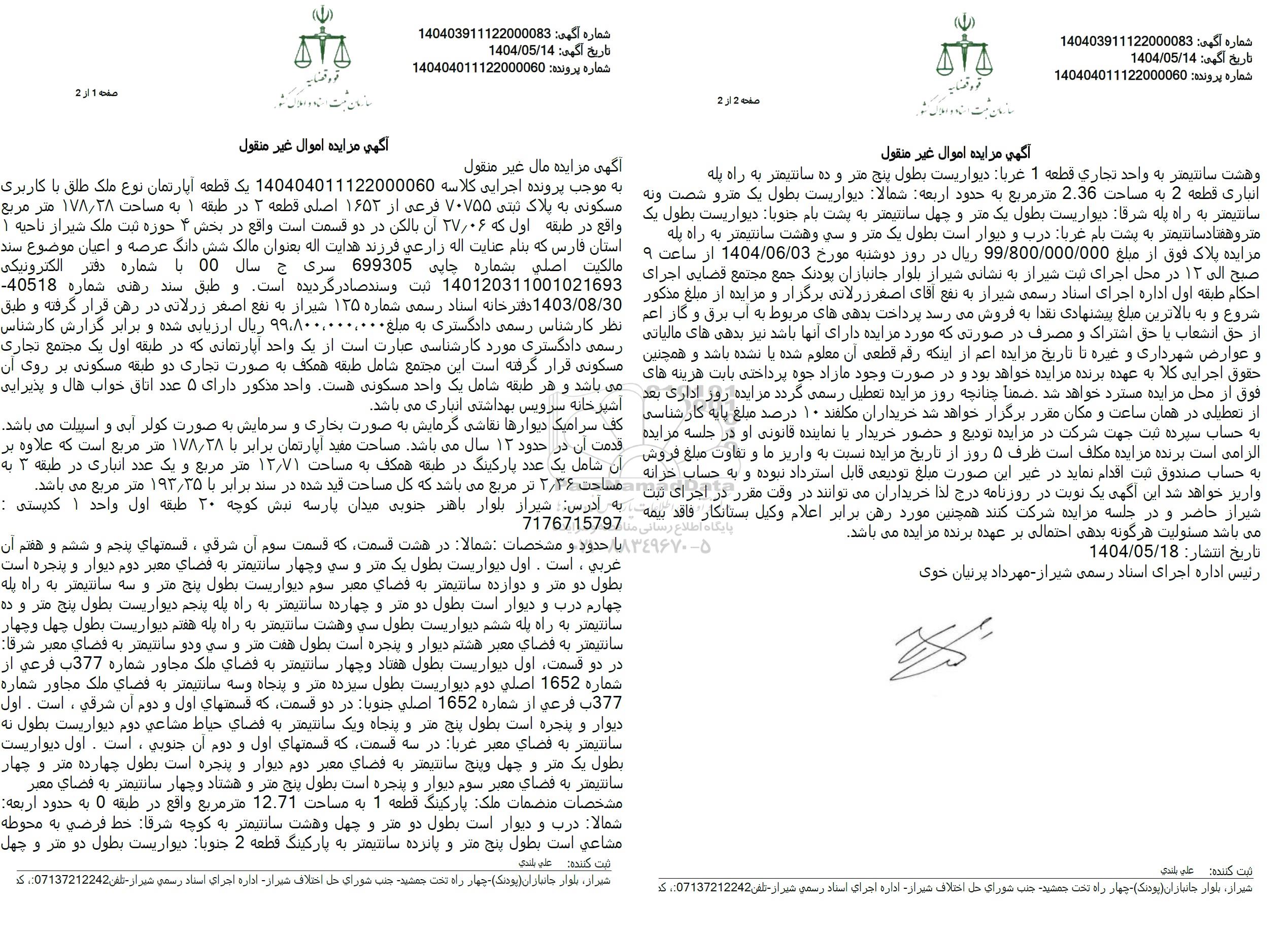 مزایده فروش یک قطعه آپارتمان به پلاک 70755 فرعی از 1652 اصلی, مزایده فروش یک قطعه آپارتمان به پلاک 70755 فرعی از 1652 اصلی