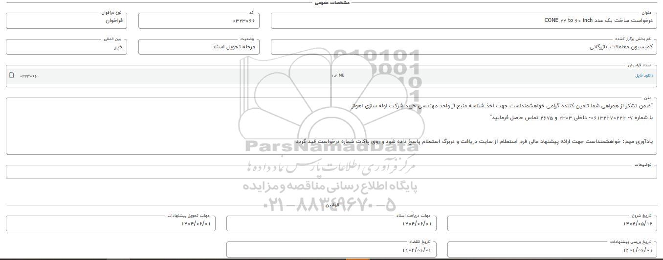 تاریخ بررسی پیشنهادات: 1404.06.01 - تاریخ انقضاء: 1404.06.02