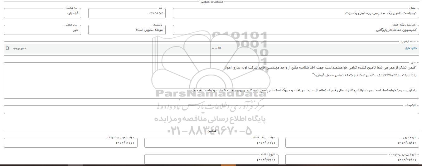تاریخ بررسی پیشنهادات: 1404.06.01 - تاریخ انقضاء: 1404.06.02