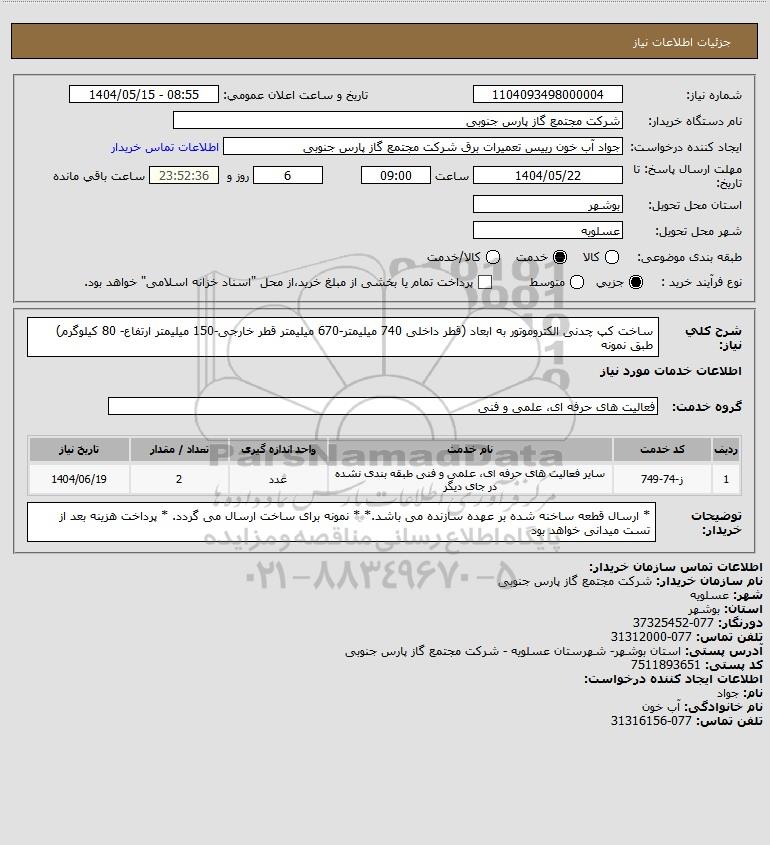 نام سازمان خریدار: شرکت مجتمع گاز پارس جنوبی