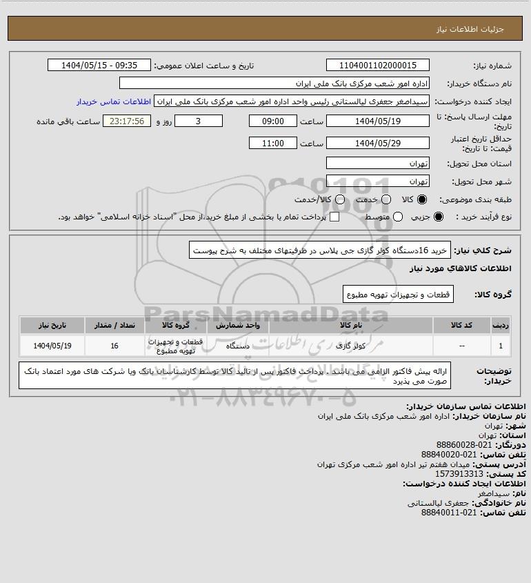 نام دستگاه خریدار:اداره امور شعب مرکزی بانک ملی ایران