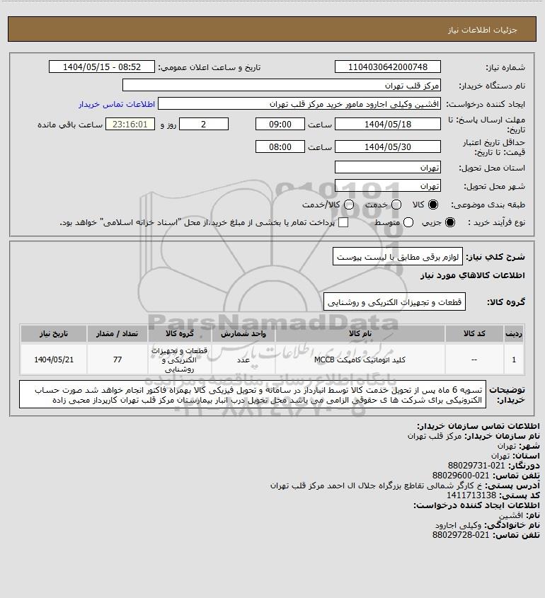 شرح کلی نیاز: لوازم برقی مطابق با لیست پیوست