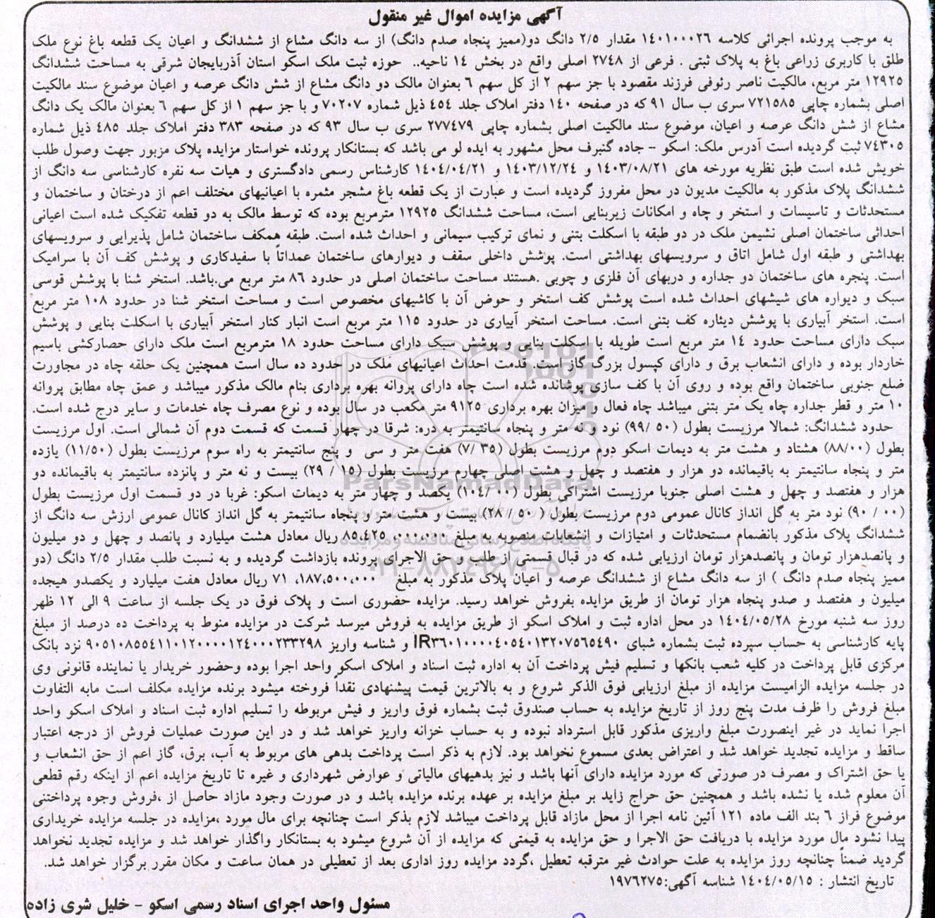 آگهی مزایده اموال غیرمنقول