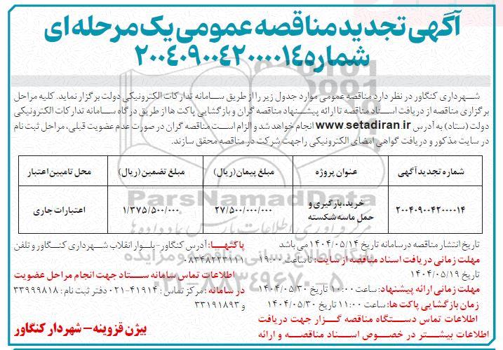 آگهی تجدید مناقصه عمومی یک مرحله ای شماره 2004090042000014