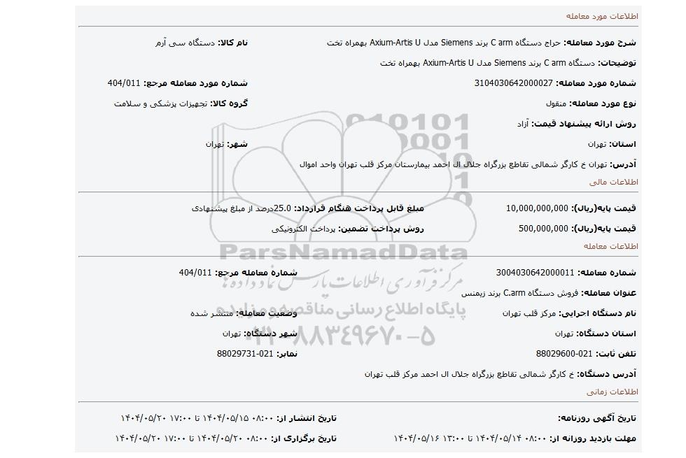 عنوان معامله: فروش دستگاه C.arm برند زیمنس