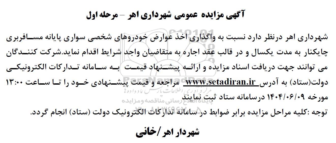 آگهی مزایده عمومی شهرداری اهر - مرحله اول ؟
