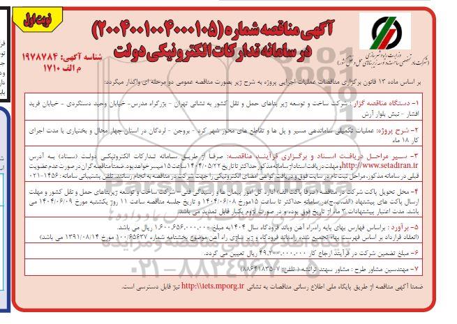 ضمنا آگهی مناقصه از طریق پایگاه ملی اطلاع رسانی مناقصات به نشانی http:\\iets.mporg.ir نیز قابل دسترسی است.