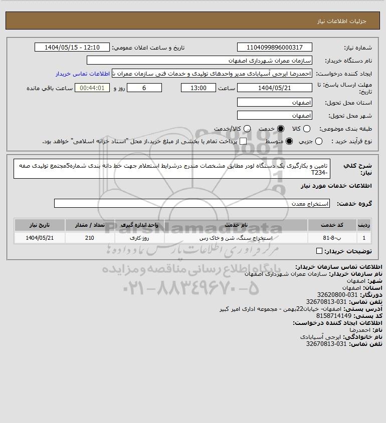 نام دستگاه خریدار:سازمان عمران شهرداری اصفهان