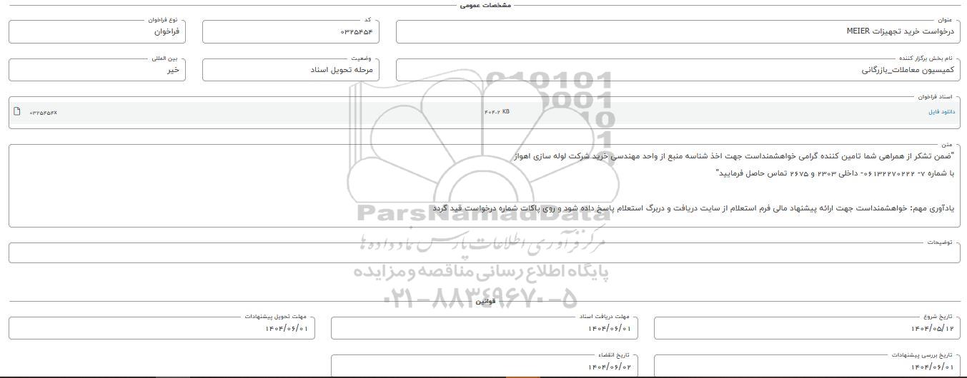 تاریخ بررسی پیشنهادات: 1404.06.01 - تاریخ انقضاء: 1404.06.02