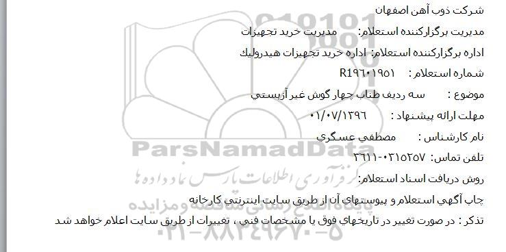 اداره برگزارکننده استعلام: اداره خرید تجهیزات هیدرولیک