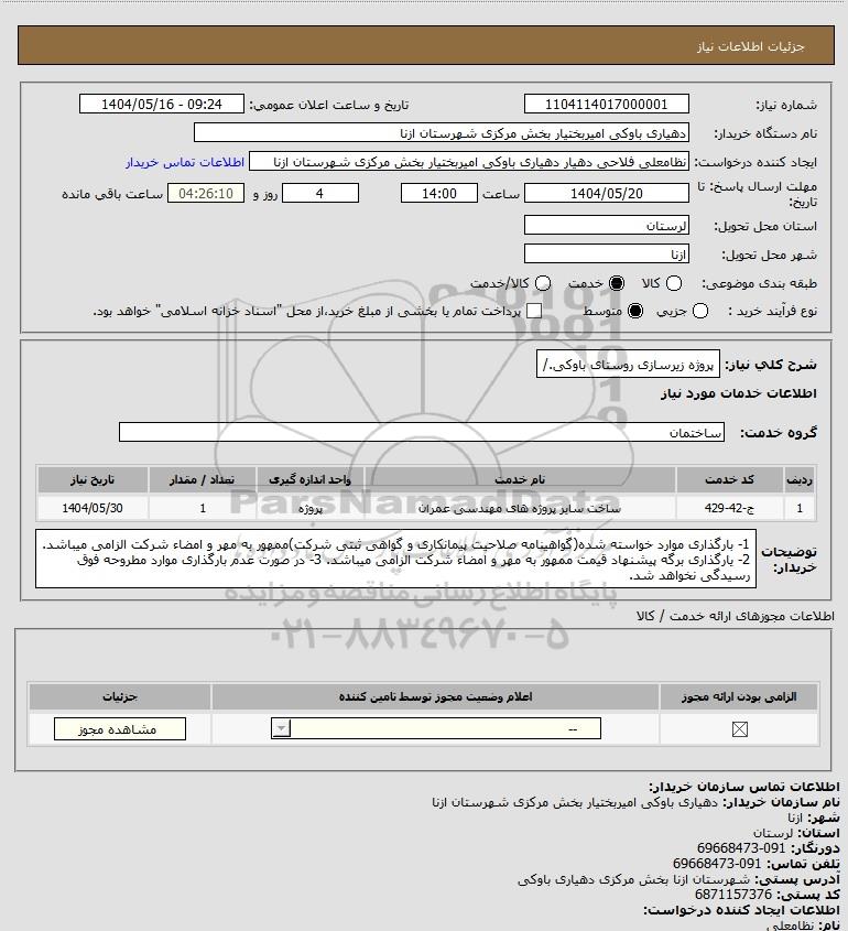 شرح کلی نیاز: پروژه زیرسازی روستای باوکی./