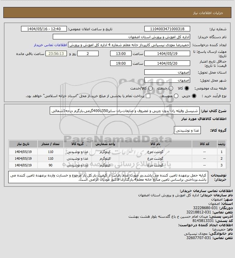 نام دستگاه خریدار:اداره کل اموزش و پرورش استان اصفهان