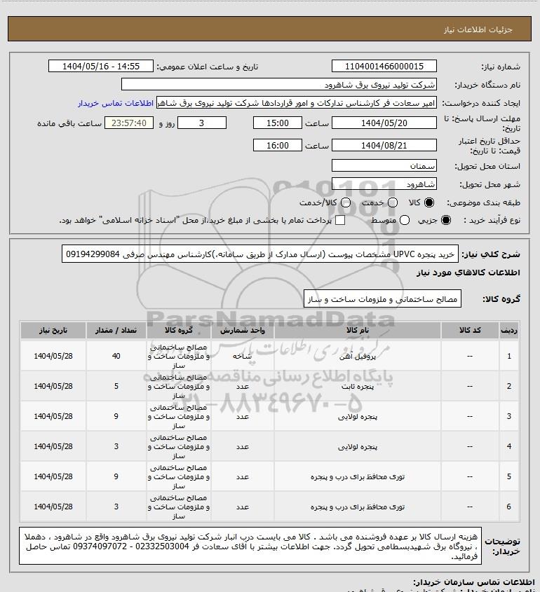شرح کلی نیاز: خرید پنجره UPVC مشخصات پیوست (ارسال مدارک از طریق سامانه،)کارشناس مهندس صرفی 09194299084