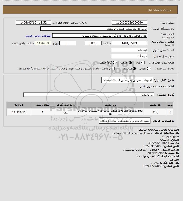 شرح کلی نیاز: تعمیرات عمرانی بهزیستی استان لرستان