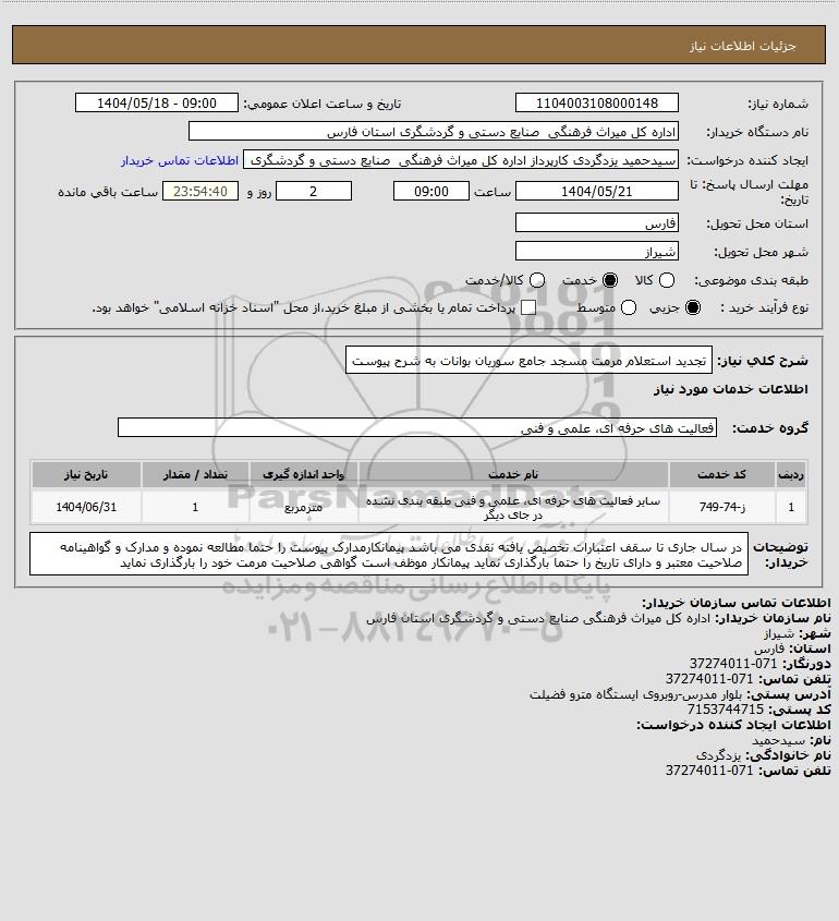 استعلام تجدید استعلام مرمت مسجد جامع سوریان بوانات به شرح پیوست, استعلام تجدید استعلام مرمت مسجد جامع سوریان بوانات به شرح پیوست