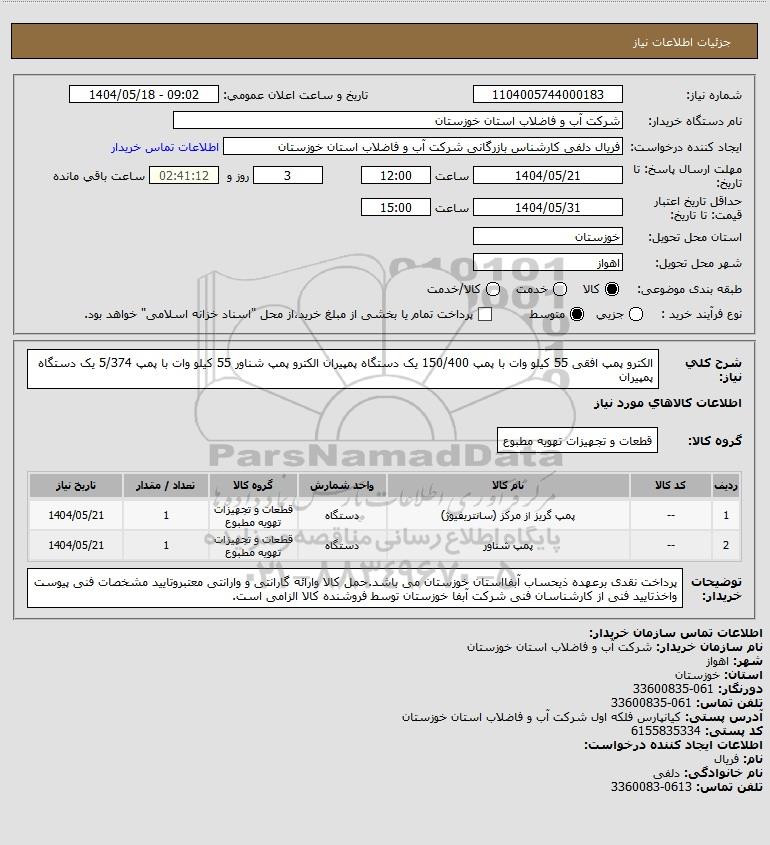 نام دستگاه خریدار:شرکت آب و فاضلاب استان خوزستان