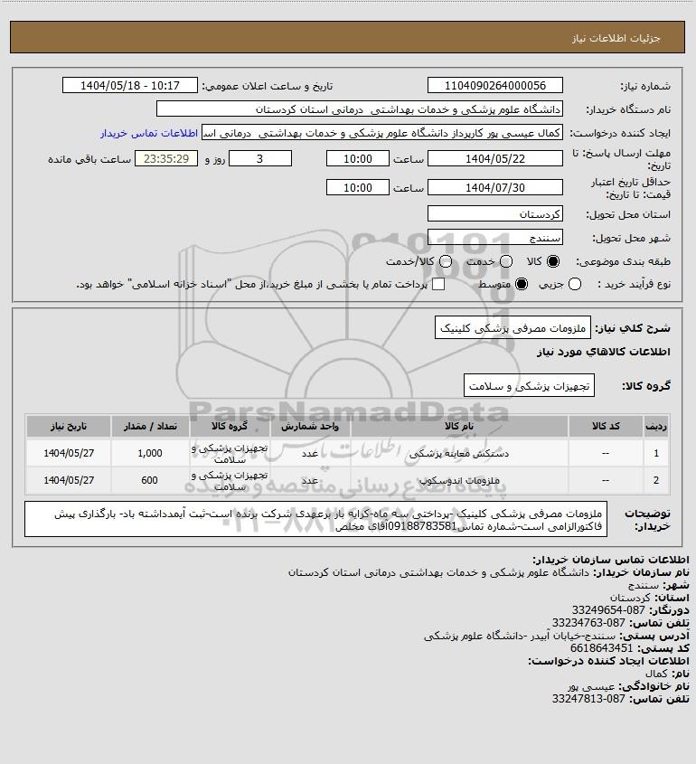 استعلام ملزومات مصرفی پزشکی کلینیک, استعلام ملزومات مصرفی پزشکی کلینیک