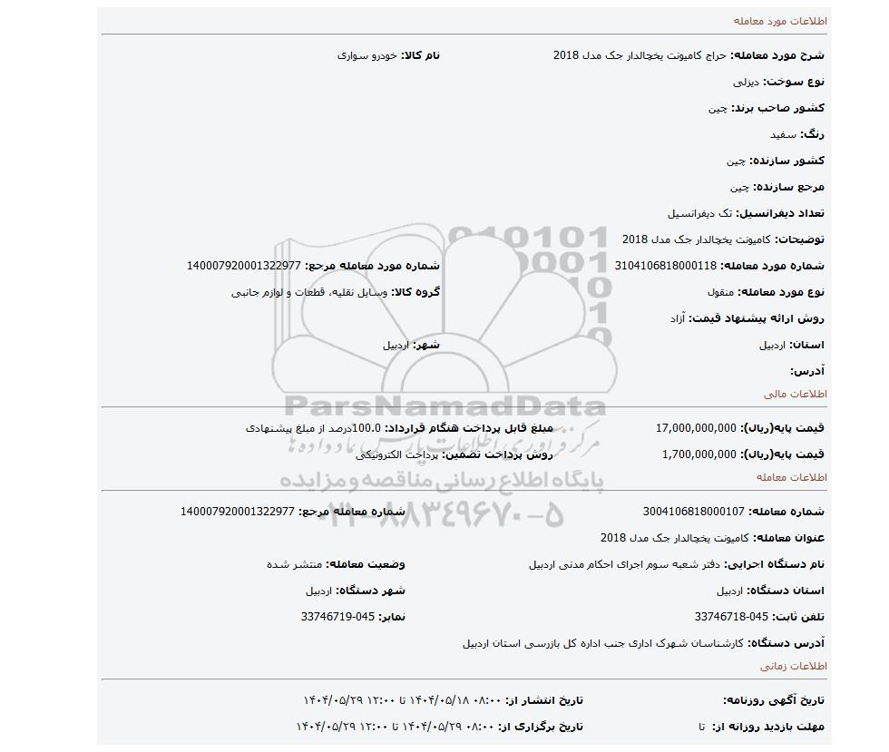 شماره معامله: 3004106818000107 | شماره معامله مرجع: 140007920001322977 | |