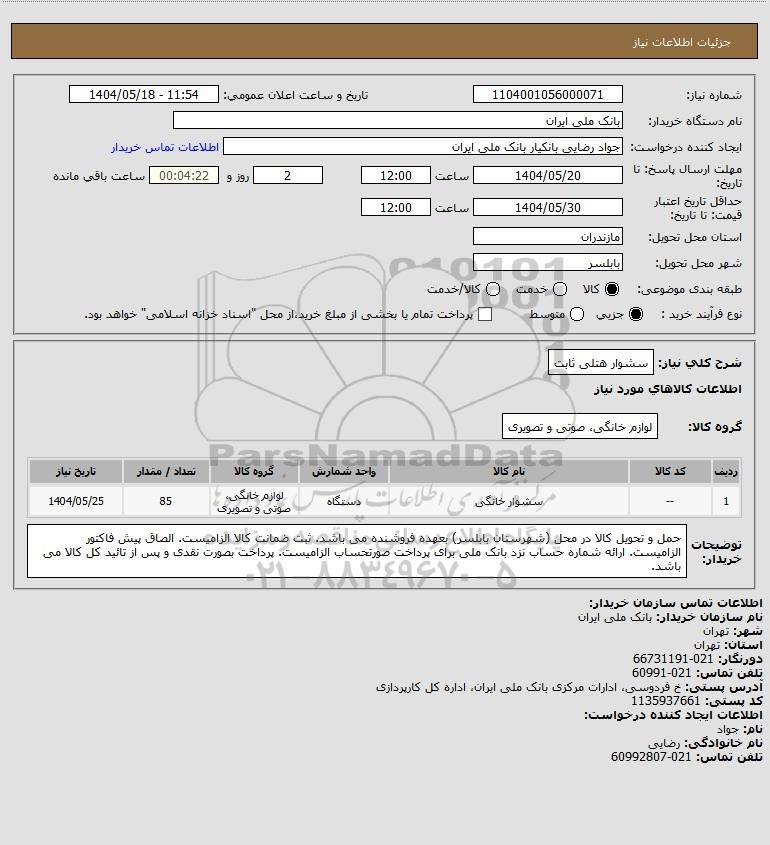 توضیحات خریدار:حمل و تحویل کالا در محل (شهرستان بابلسر) بعهده فروشنده می باشد. ثبت ضمانت کالا الزامیست. الصاق پیش فاکتور الزامیست. ارائه شماره حساب نزد بانک ملی برای پرداخت صورتحساب الزامیست. پرداخت بصورت نقدی و پس از تائید کل کالا می باشد.